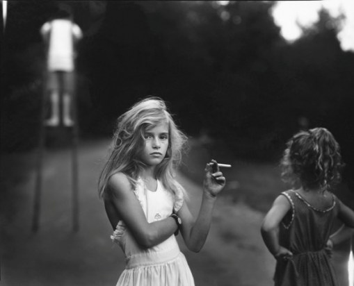 that reminds me of today with Elspeth, buying fabric in National City to make a dress and seeing little kids dance in a Subway where we bought a Sprite and used the bathroom, receiving flowers and wrapping stones in gold wire, drinking coffee with milk and sugar from my tea set, staring at the pinks in paintings, some or all of that is in this photograph, titled “Candy Cigarette” by Sally Mann. (More Sally Mann here, on Artsy.)